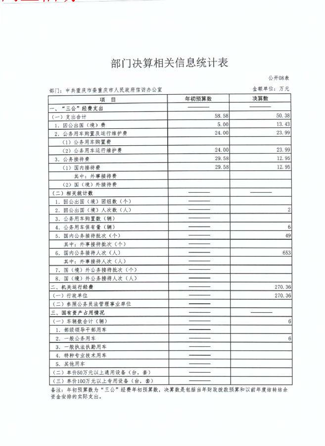 (七)“三公”经费:指用一般公共预算财政拨款安排的因公出国(境)费、公务用车购置及运行维护费、公务接待费。其中,因公出国(境)费反映单位公务出国(境)的国际旅费、国外城市间交通费、住宿费、伙食费、培训费、公杂费等支出;公务用车购置费反映单位公务 用车购置支出(含车辆购置税);公务用车运行维护费反映单位按规定保留的公务用车燃料费、维修费、过路过桥费、保险费、安全奖励费用等支出;公务接待费反映单位按规定开支的各类公务接待(含外宾接待)支出。