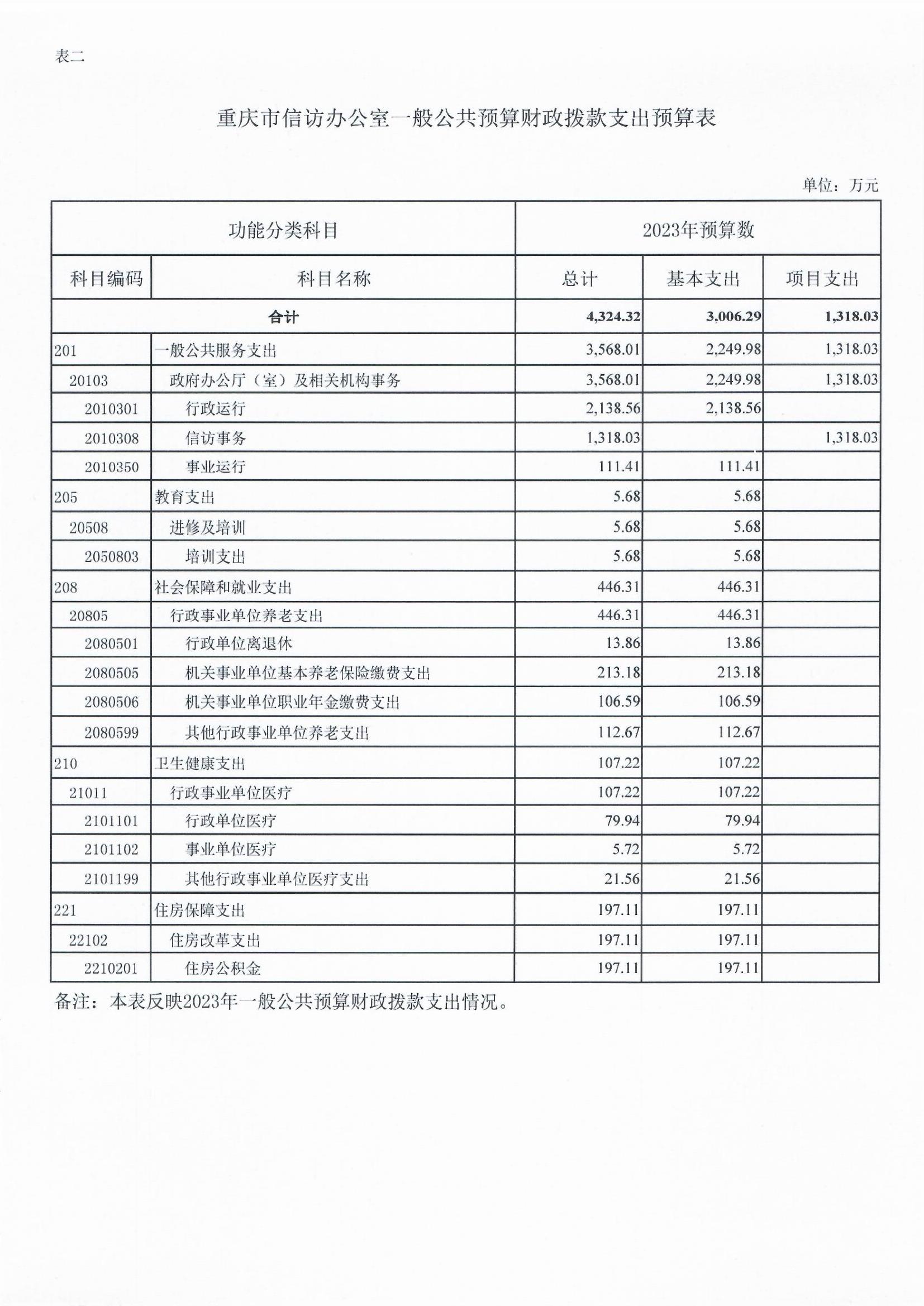 (二)支出预算:2023年年初预算数4324.32万元,其中:一般公共服务支出预算3568.01万元,教育支出预算5.68万元,社会保障和就业支出预算446.31万元,卫生健康支出预算107.22万元,住房保障支出预算197.11万元;支出预算较去年增加353.87万元,主要是基本支出增加664.4万元,项目支出减少310.53万元。