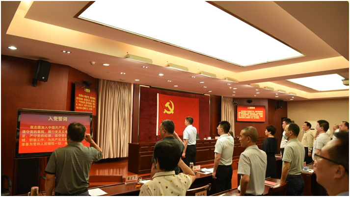 党课结束后,钱永培带领全体党员干部重温了入党誓词。