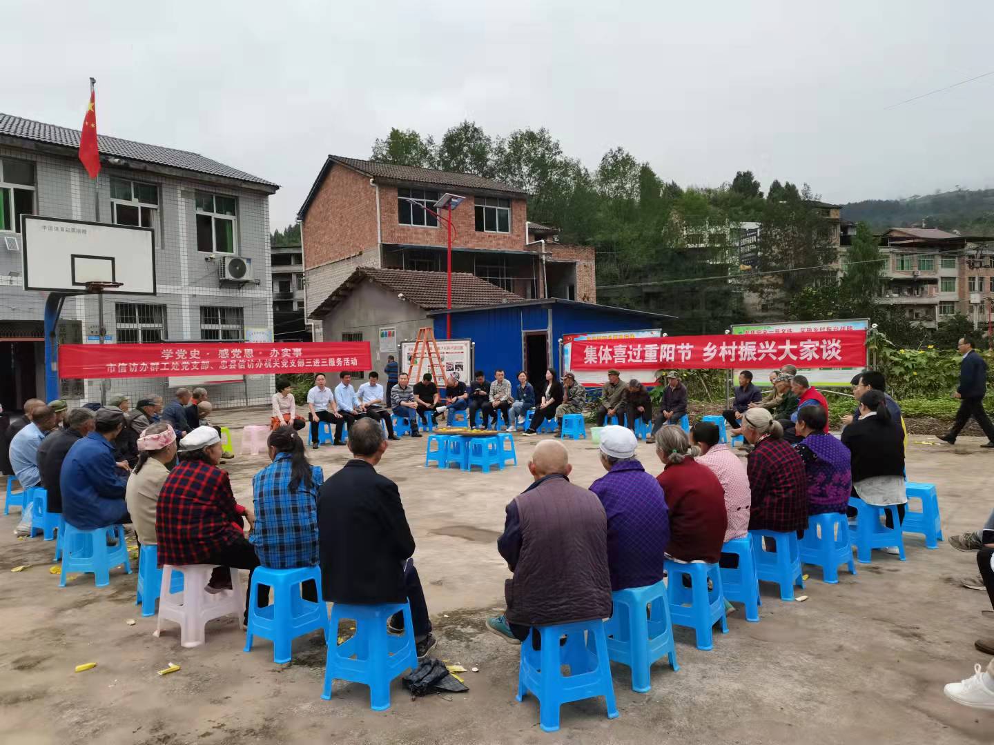 10月14日,群众工作指导处党支部联合忠县污污漫画 办党支部在忠县磨子土家族乡白河村村委会举办“集体喜过重阳节、乡村振兴大家谈”院坝会。白河村村支两委成员和40余名老年群众参加院坝会,围绕白河村基础设施建设、产业发展、人才队伍建设等积极建言献策。群众工作指导处党支部、忠县污污漫画 办党支部、白河村相关负责同志对群众反映、咨询的问题一一作答,现场发放污污漫画 法治宣传资料200余份。