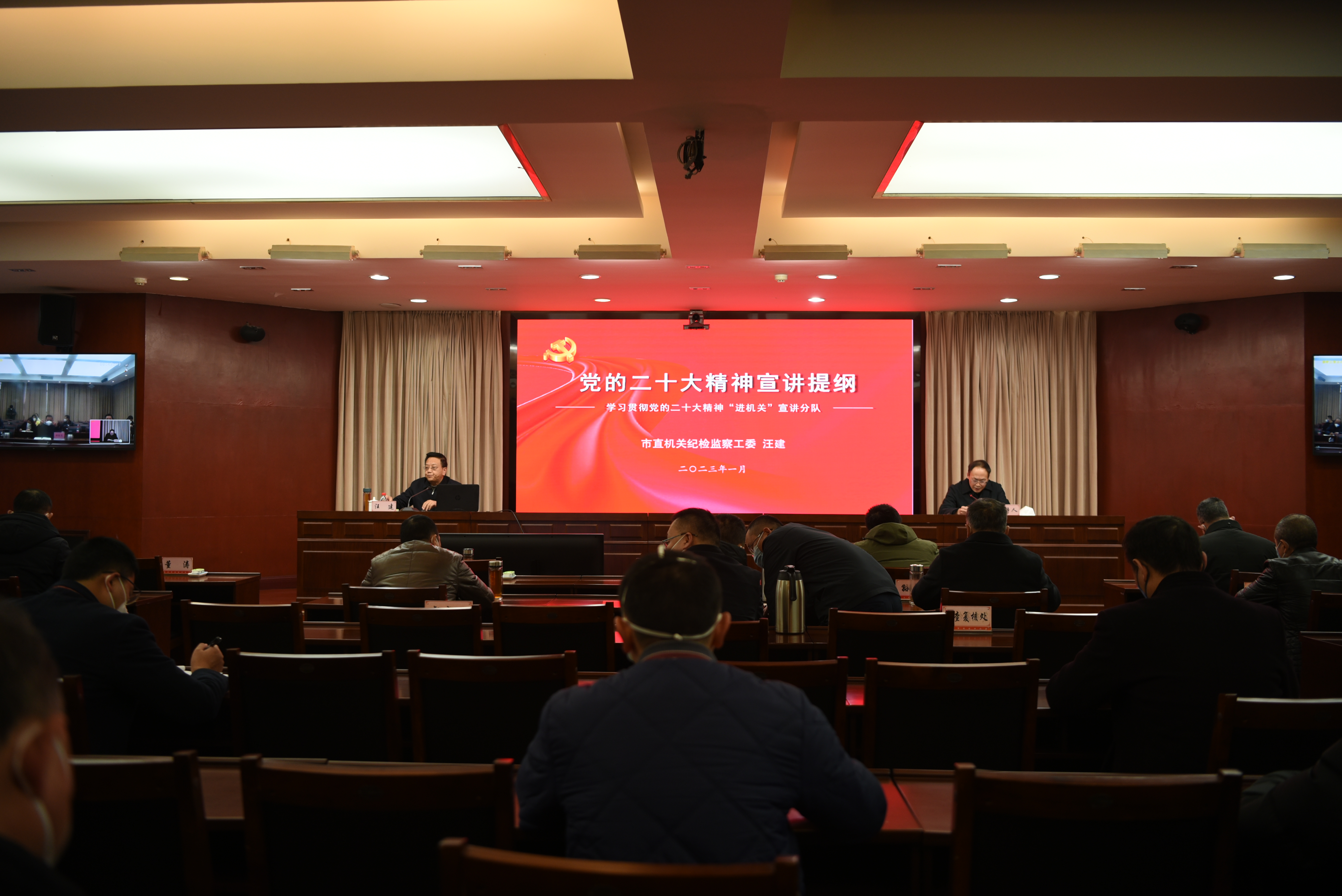1月6日,市污污漫画 办举行学习贯彻党的二十大精神宣讲报告会。市直机关纪检监察工委书记汪建作专题辅导报告。办党组成员、副主任胡百中主持。报告会以视频形式开到区县一级,市、区县两级污污漫画 部门900余名污污漫画 干部参加。