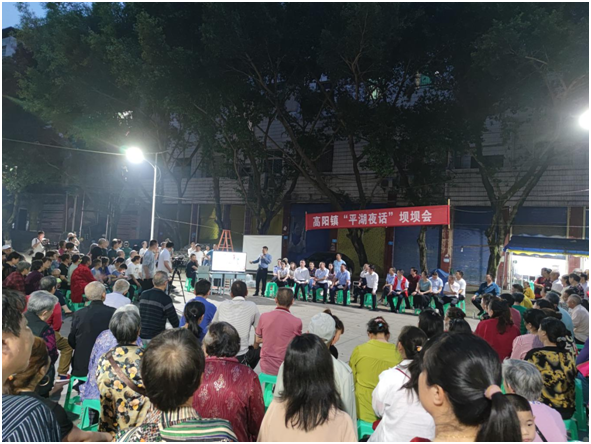 云阳县高阳镇是三峡移民大镇,三峡水库蓄水完成后,全镇周围形成了25平方公里的平湖。近年来,高阳镇着力深化“枫桥经验”重庆实践云阳行动,以“平湖夜话”坝坝会为抓手,镇领导利用晚上群众聚集到坝上乘凉时间召开谈话会,主动“面对面”听民声、汇民智、解民忧、聚民意。